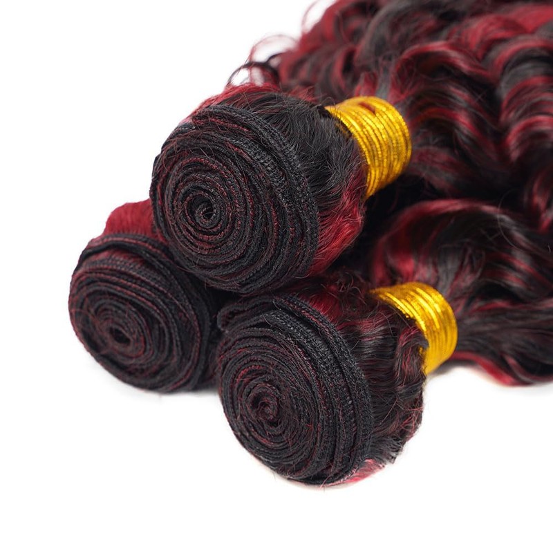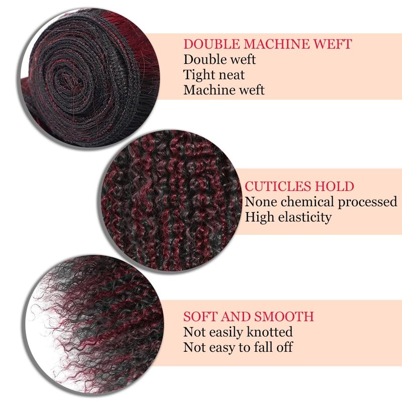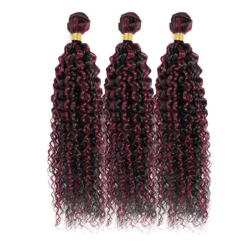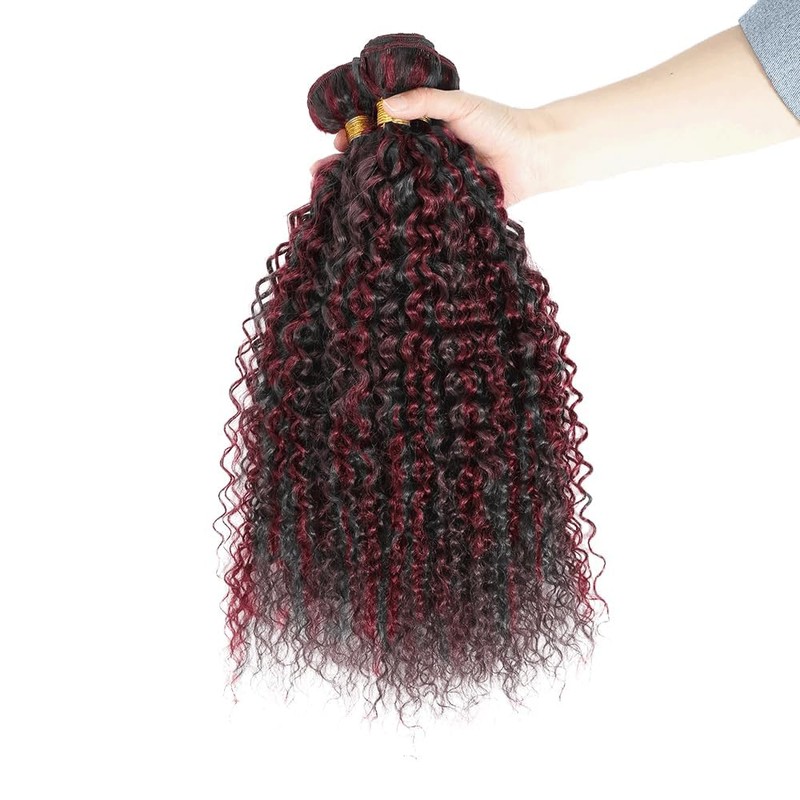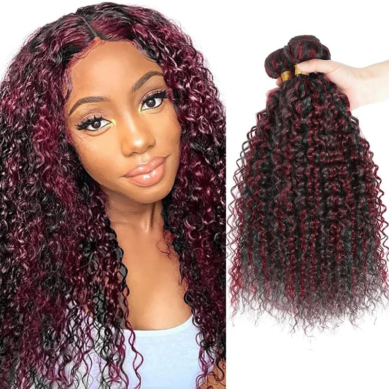Black Highlight Burgundy Human Hair Bundles Curly Wave Quick Weave Wet and Wavy Unprocessed Native Virgin Raw Hair Extensions 3 Bundles 18 20 22 Inch Kinkycurly Jerry Curl JKP1B 99j Color for Woman