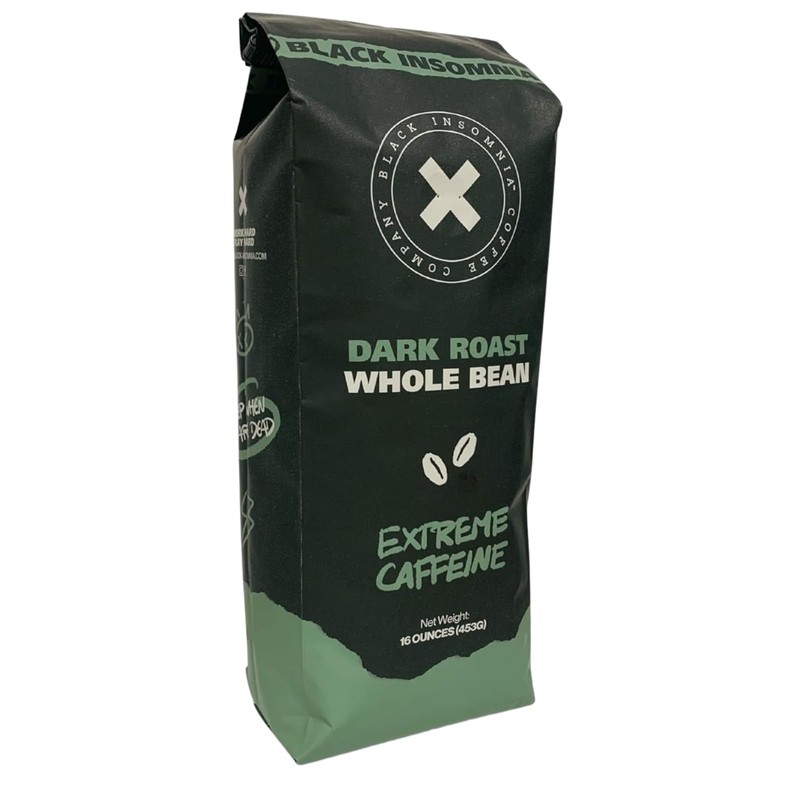 Black Insomnia Coffee Dark Roast Whole Bean - Strongest Coffee In The World - 1lb Bag