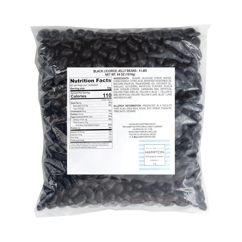 Black Jelly Beans, 4 Pound Bulk Bag, Black Licorice Flavor, The Hampton Popcorn & Candy Company