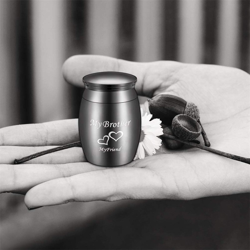 Black Keepsake Cremation Urns, Small Funeral Urns for Human Ashes with My Brother My Friend Engraved