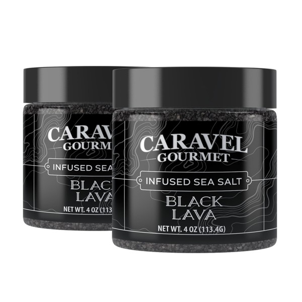 Black Lava Salt, All-Natural Sea Salt Infused with Activated Charcoal - 4 oz. Jar (2-Pack)