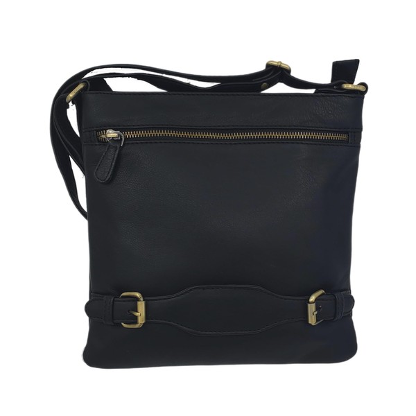 Black Leather Cross Body Bag with Zip Closure