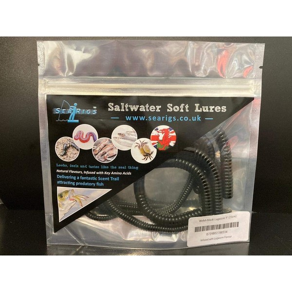Black Lugworm 5 x 8 Inch Artificial Soft Lure LRF Bait for Bass, Cod and Flatfish.