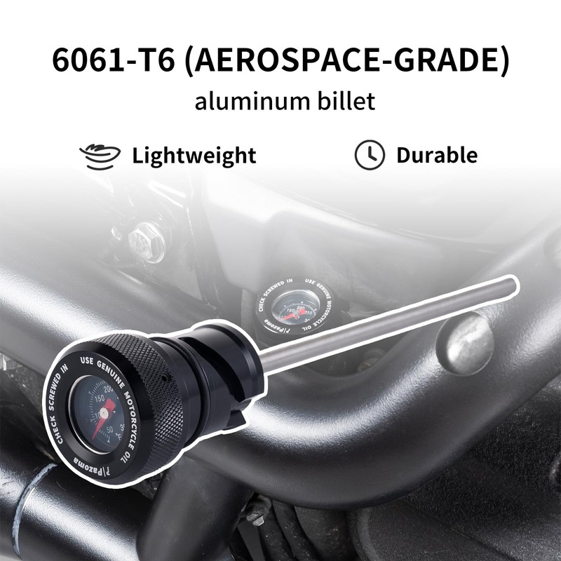 - High-Quality Material: The black softail oil dipstick is made from 6061-T6 (aerospace) aluminum billet, lightweight and eco-friendly. This black, compact oil temperature gauge features a sturdy, shock-resistant construction for long-lasting durability.