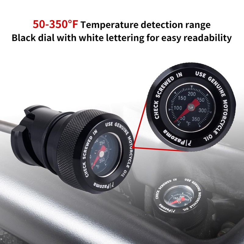 - Easy to Read: The dial measures from 50-350°F, with a black dial and white lettering for easy readability. The total length of the dipstick is approximately 18.9 cm, with high and low oil level markings for quick and easy checks of your motorcycle's oil level and engine temperature anywhere, anytime.