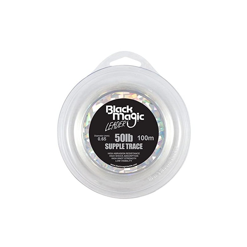 This Black Magic Supple Trace Leader is manufactured from Japanese copolymers. It is supple, sensitive and features high abrasion resistance. Great knot strength, low diameter and ultra clear - this leader is excellent for a variety of uses. Plus it's packaged into a compact dispenser pack that fits in your tackle box or Leader Feeder, which means you can always reuse it again as a lure holder. Mint!