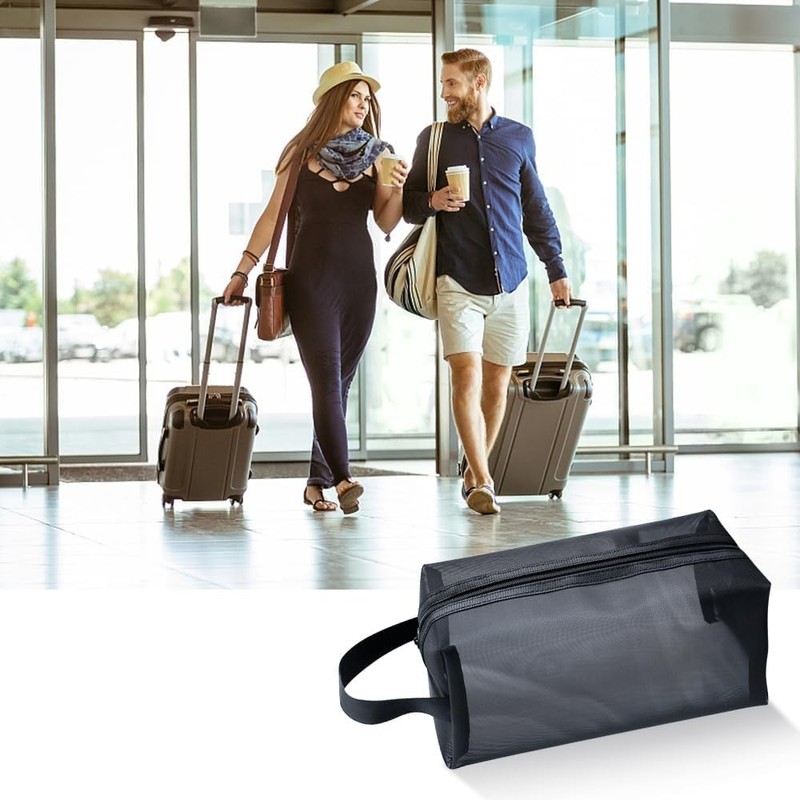 Black mesh Makeup Bag, Makeup Storage Bag, Portable Makeup Bag Zipper Makeup Bag, mesh Shower Bag, Makeup Travel Bag with Handles Women Men Girls, Black