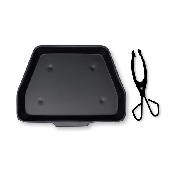 Black Metal Ash Pan - 28cm Wide (11") with Lightweight Coal and Log Tongs