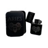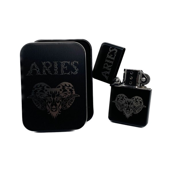 Black Metal Lighter Refillable, Laser Engraved Zodiac Aries