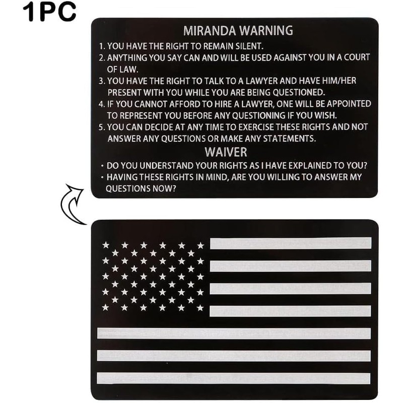 - PROFESSIONAL DESIGN: Black Miranda card featuring a torn American flag design on the back, perfect for law enforcement and legal professionals