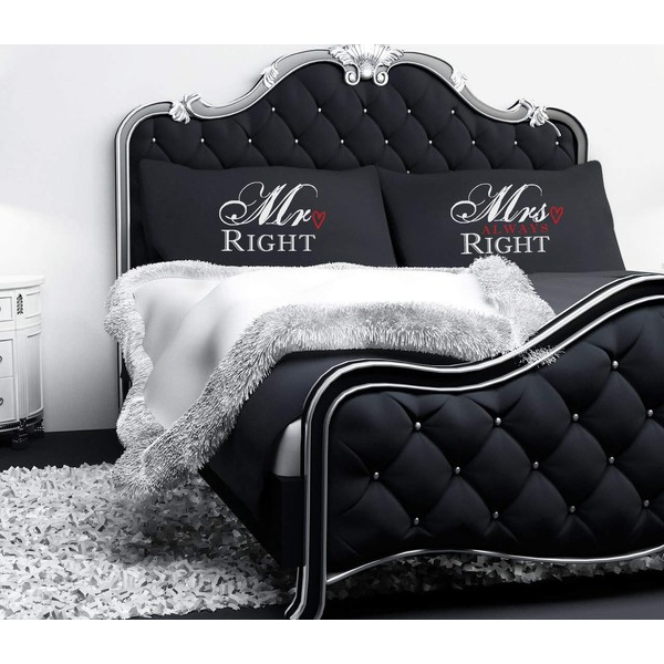Black Mr Right Mrs Always Right Pillowcase Pair of Couples Pillowcases Pillow Case Gift Romantic Bedding Present Valentines Wedding Engagement