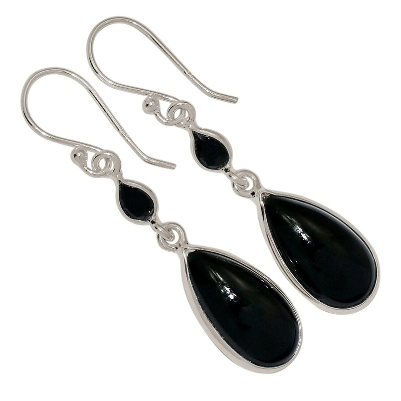 Black Onyx - Brazil 925 Sterling Silver Earrings Jewelry ALLE-18528