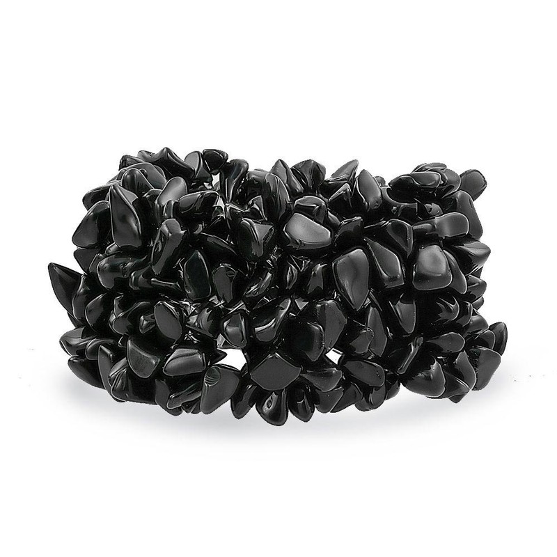 Black Onyx Chip Stone Wide Chunky Cluster Multi Strand Stretch Statement Brac...