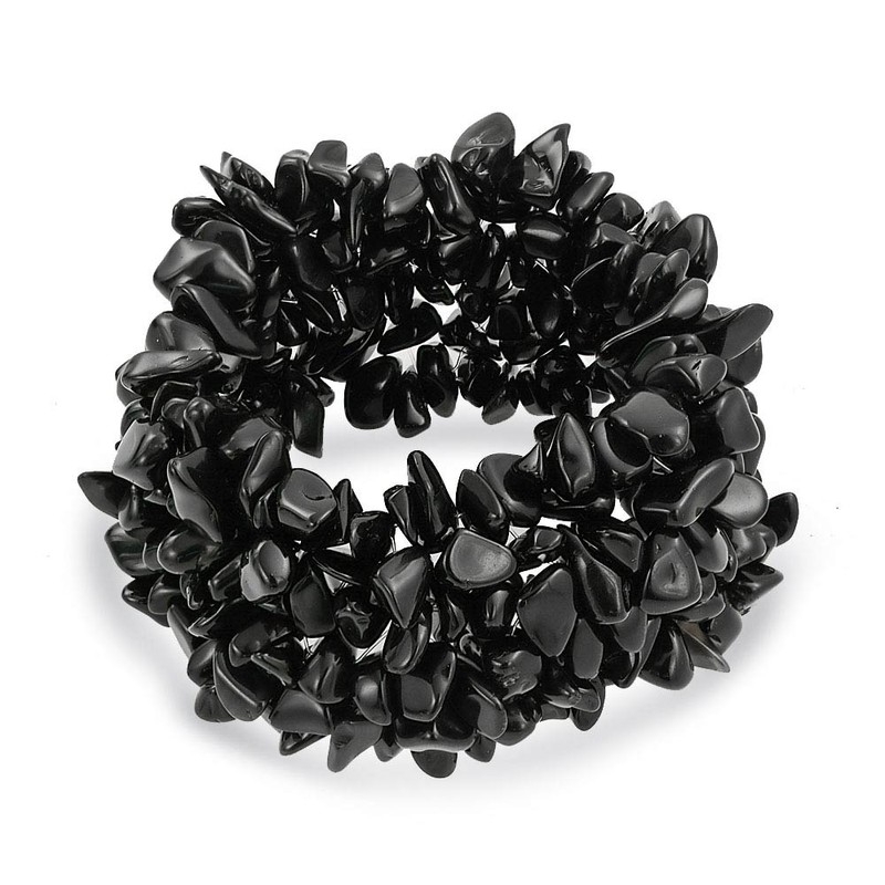 A simple stunner. Black Onyx bracelets are classic, beautiful additions to every woman's jewelry collection. Our Black Onyx chips bracelet is a must-have. Black Onyx is believed to be a grounding stone, symbolizing vigor, strength, and stamina. Stretch bracelets offer comfort and a perfect fit for various wrist sizes. This sensational stretch Onyx bracelet is a proven winner. Consider buying several for friends and family. Get a gift they will love for any special occasion.