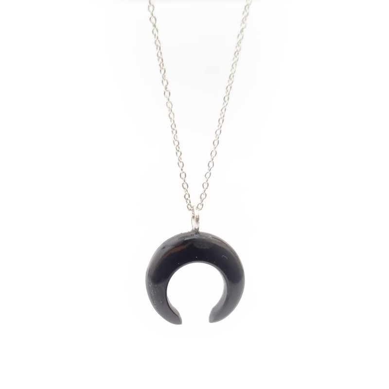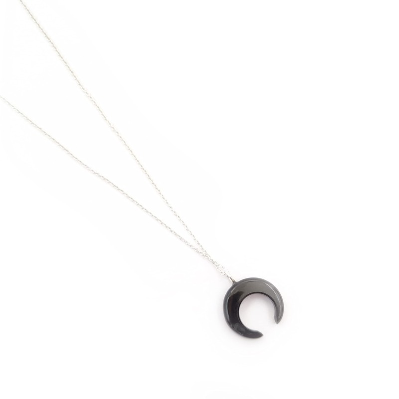 Black Onyx Moon Pendant Sterling Silver Chain August Birthstone Jewelry Gemstone Necklace for women