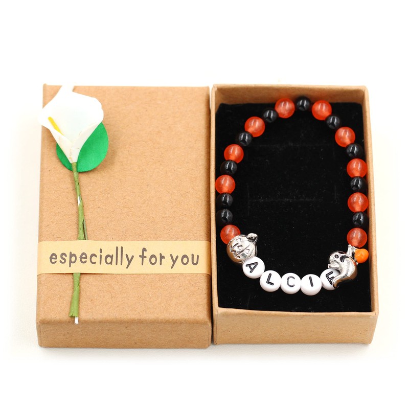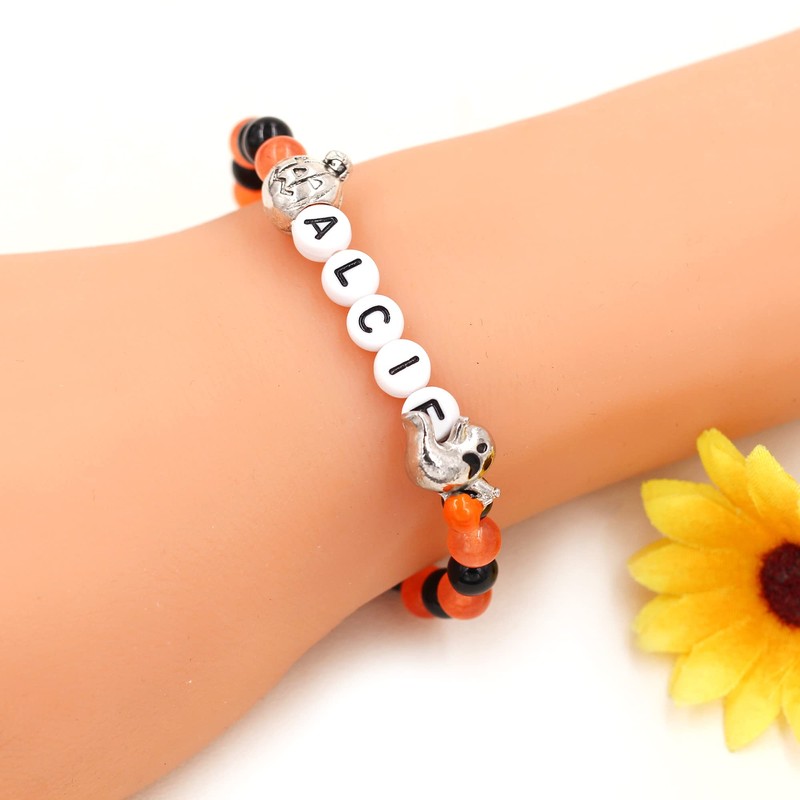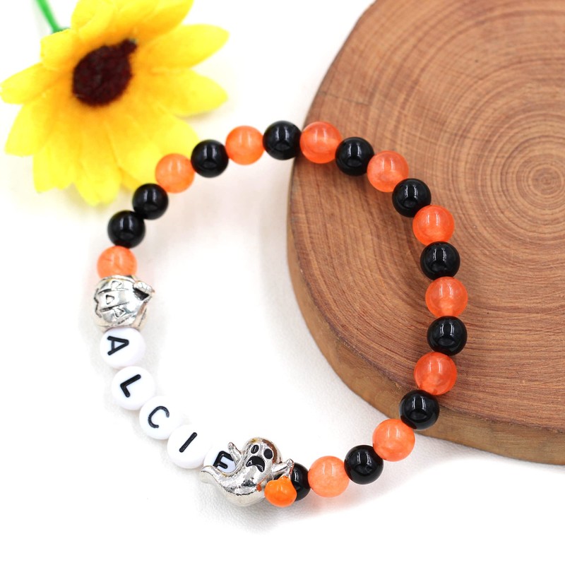 Black Orange Jade Charms Halloween Bracelets All Saints' Gift - DIY Customized Name Beaded Bracelet, Metal, jade beads