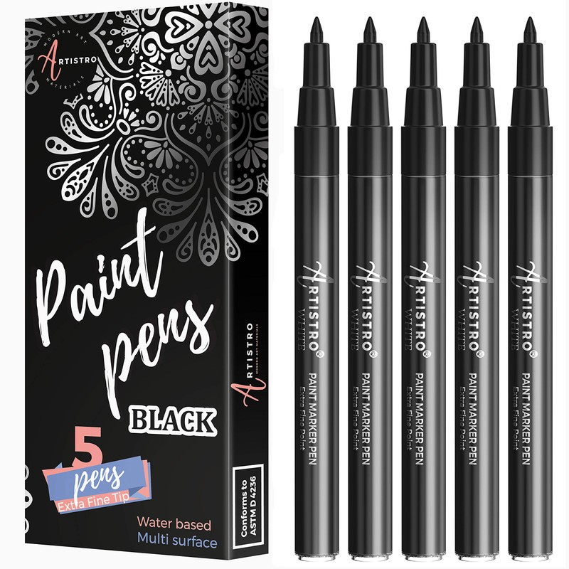 - Premium quality & Elegant design. Artistro extra fine tip black paint pen utilizes vivid, acrylic ink that dries quickly to produce a very durable opaque and glossy finish on almost all surfaces.