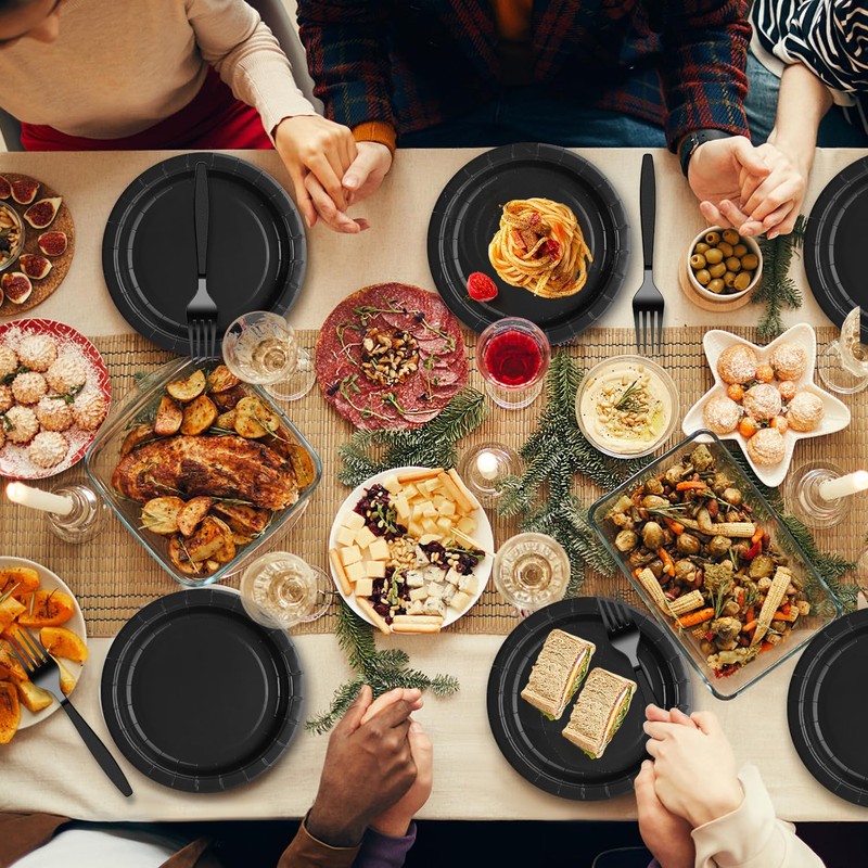 - Widely Applicable: The black paper disposable party supplies are ideal for halloween decorations, weddings,receptions,new year parties,holidays,picnics,catered events and all occasions;Make your event more sparkling, memorable and unique