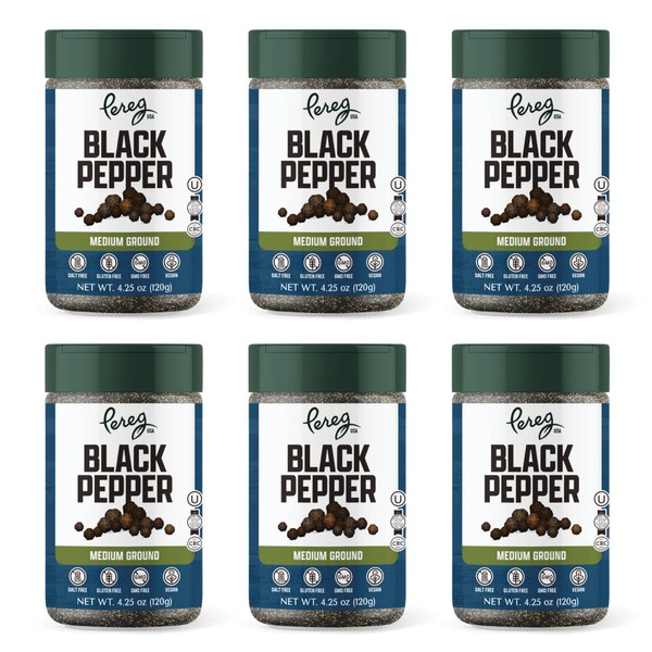 Black Pepper - Medium Ground Spices - (4.25 Oz x 6 Pack) - Naturally Harvested Peppers - Strong & Aromatic Taste - Non-GMO & Kosher Certified