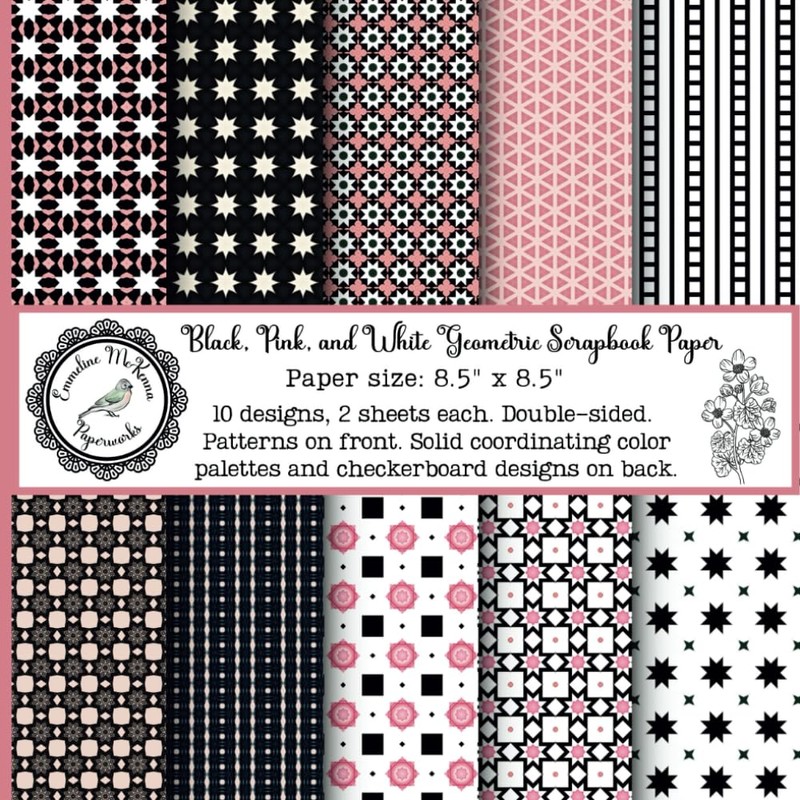Black, Pink, and White Geometric Patterned Scrapbook Paper: Craft Pad, Abstra...