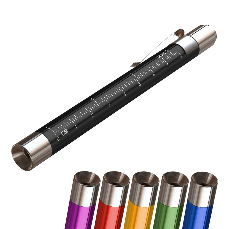 Compact pocket-size penlight with a focused beam of light to give you the most robust white illumination possible for patient assessments. Sturdy lightweight aluminum penlight makes it easy to carry in any pocket or white coat and comes with a metric ruler on the shaft. Designed for daily use and comes with replaceable batteries. This penlight is a valuable addition to your pocket equipment.