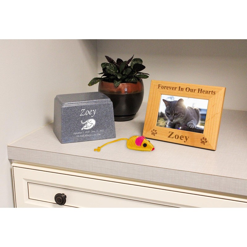 - A QUALITY COMPOSITE GRANITE URN: This urn will provide an enduring memorial to your beloved pet that can be proudly displayed on any shelf or mantel. This luxurious urn is crafted using state-of-the-art composite technology and century old molding techniques. It features a felted bottom which protects surfaces.
