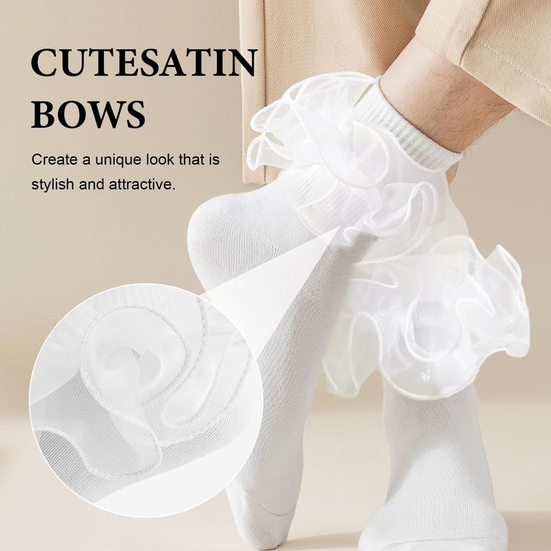 💡Ruffle socks double lace with bows has the ability to stretch and recover.No matter what your foot shape is,you can enjoy a custom fit without restraint and marks.