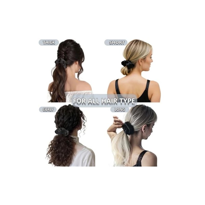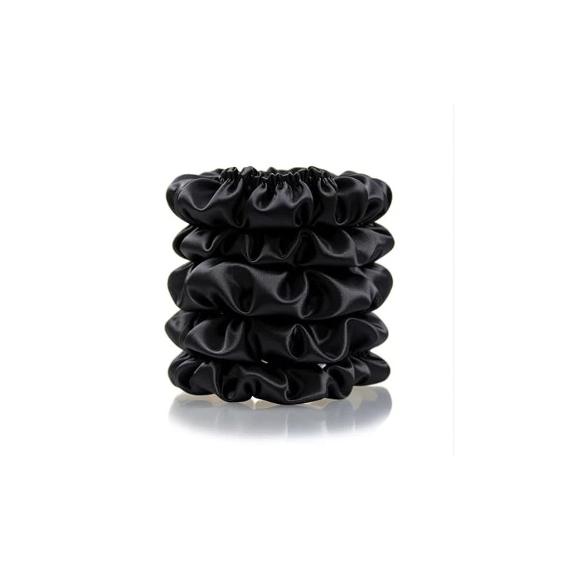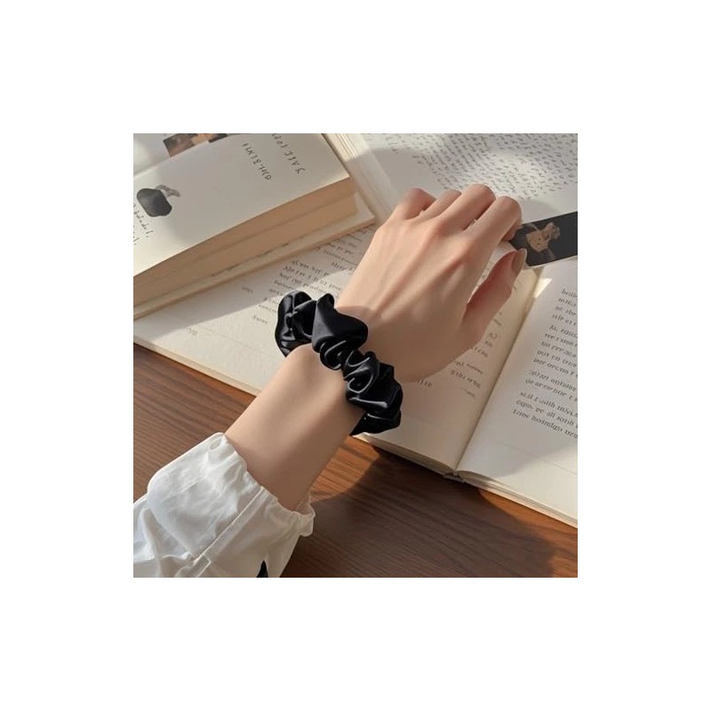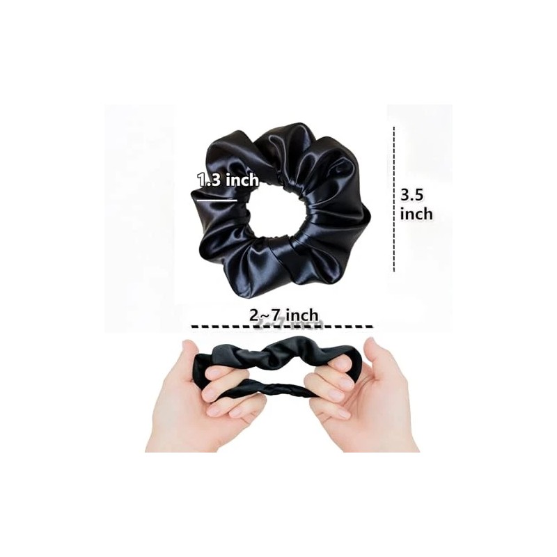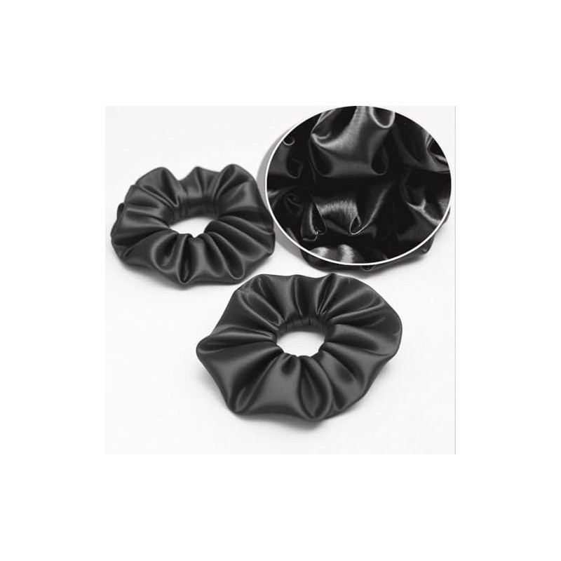 Black Satin Scrunchies for Women Silk 1 Count (Pack of 1) medium black