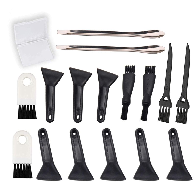 - Package Included:10 Pcs Black Scrapers,6 Pcs 3 sizes brushes,2 Pcs Spoons & A Storage Box.An ideal gift for your friends and lovers.