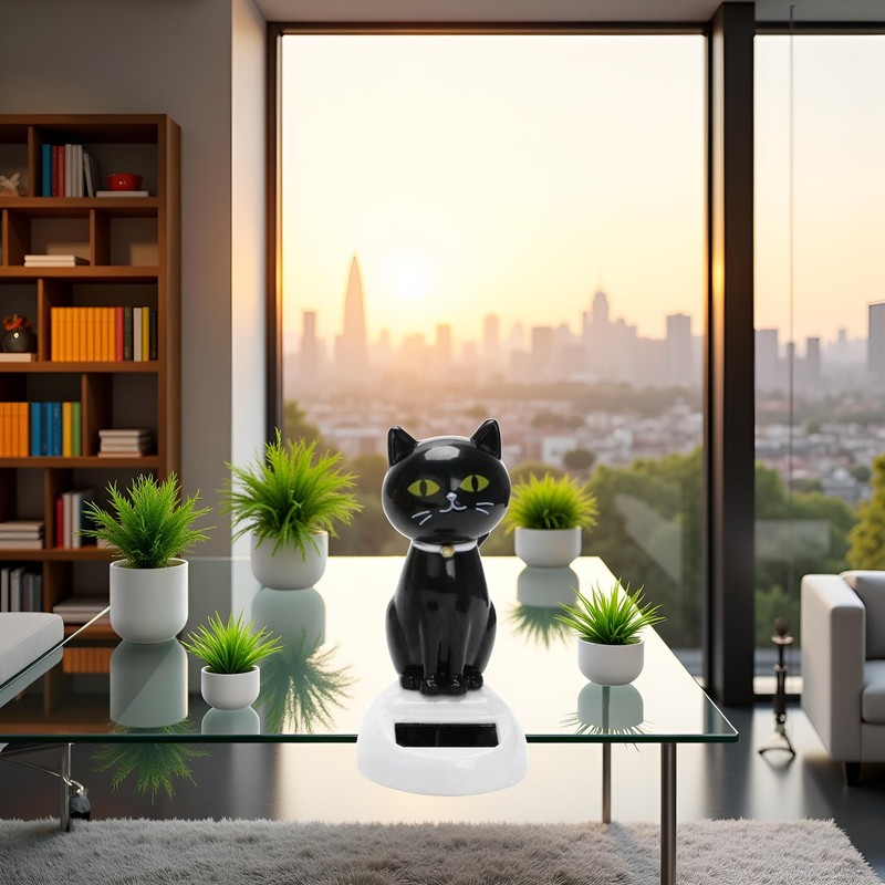 Black Solar CatDoll Dancing Cat,Figure Car Ornament,Dancing Ornaments Solar Powered Car Decoration, Desktop Deco, Gift Window Party Car,Desk Home Furniture for Display,Learning and Education,Kits