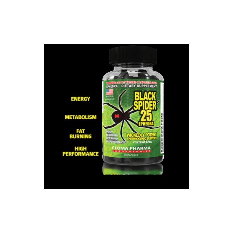 Black Spider 25 Ephedra Cloma Pharma 100 Cáps Termogénico