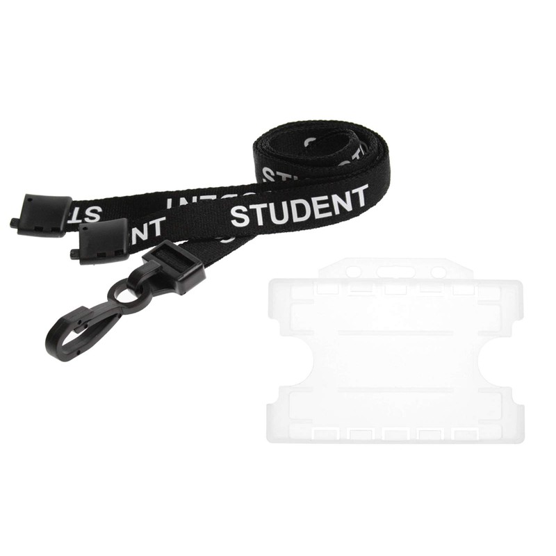 Black Student Lanyard with Double Sided Card Holder (Clear)