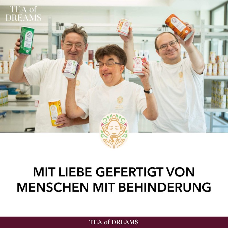 • Organic, social and inclusive: our tea comes from organic cultivation, is DE-ÖKO-039 certified and environmentally friendly. Tea of Dreams creates delicious premium teas together with people with disabilities