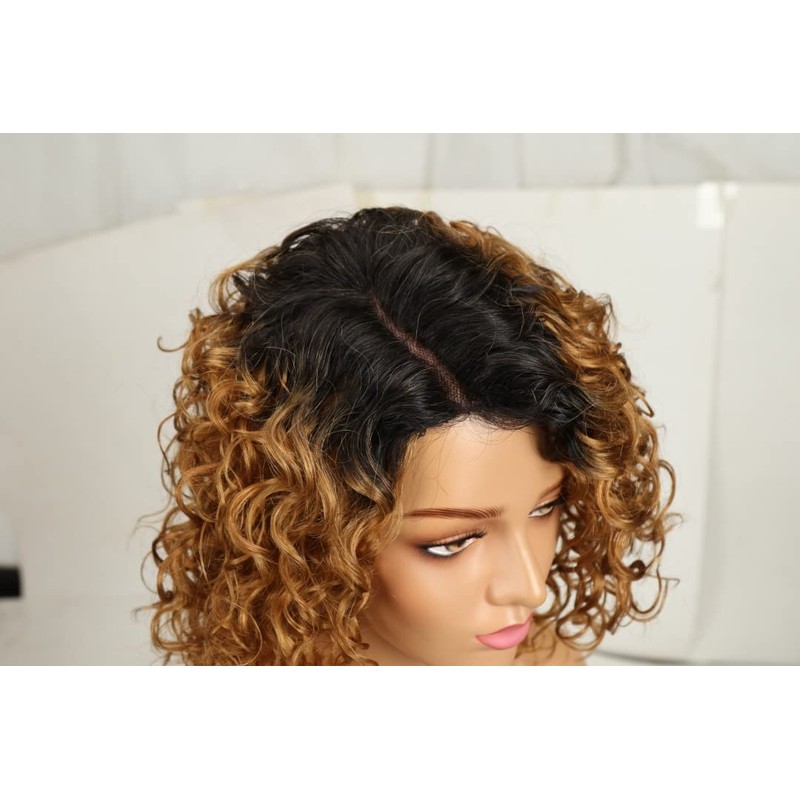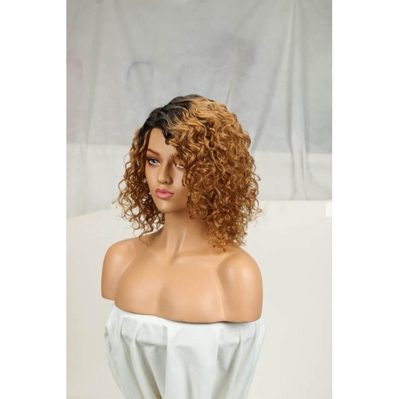 Black Textures Loose Curly Human Hair Wig, Ombre Black to Honey Blonde, Lace Front, 14 Inches, Natural Wavy Textures 1B/27