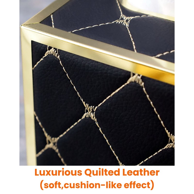 Black Tissue Box Cover,KEZNGUU Quilted Leather Tissue Box Holder with Magnetic Bottom,Gold Tissue Box Cover Square,Decorative Tissue Covers Cube for Bathroom,Bedroom,Living Room-Matte Black