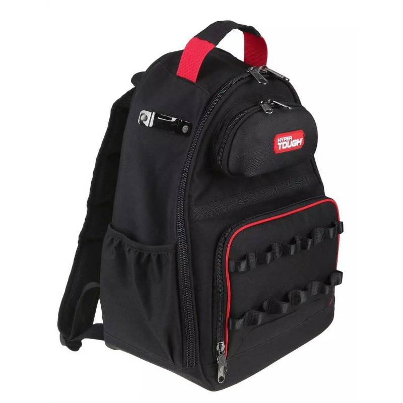 This Tool Backpack is equipped with 20 Pockets and 20 Loops for tool storage. This backpack also includes a zippered safety glass case, external tape measurer clip, padded should straps, and has hard feet on the base which provides added protection. This back is unisex.