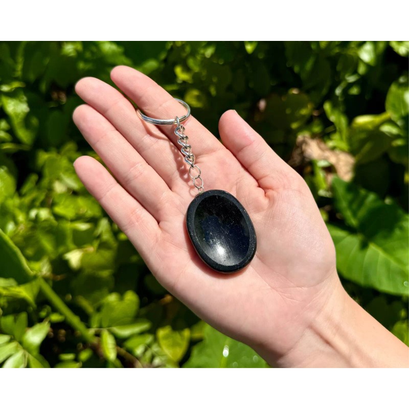 Black Tourmaline Worry Stone Keychains - Tourmaline Crystal Palm Stone Key Rings