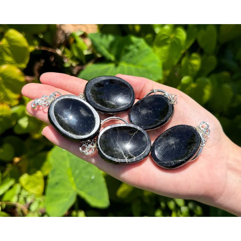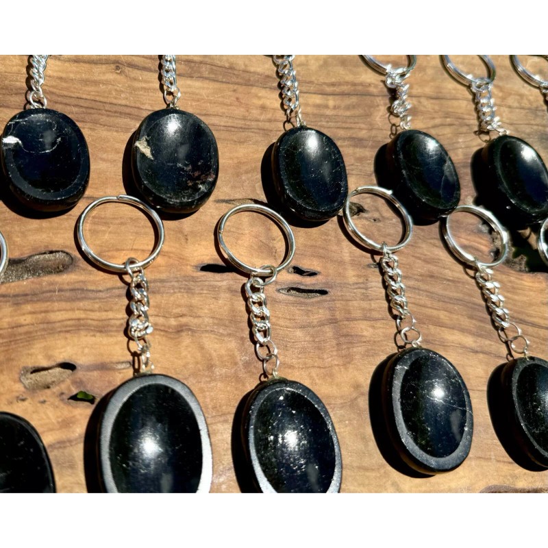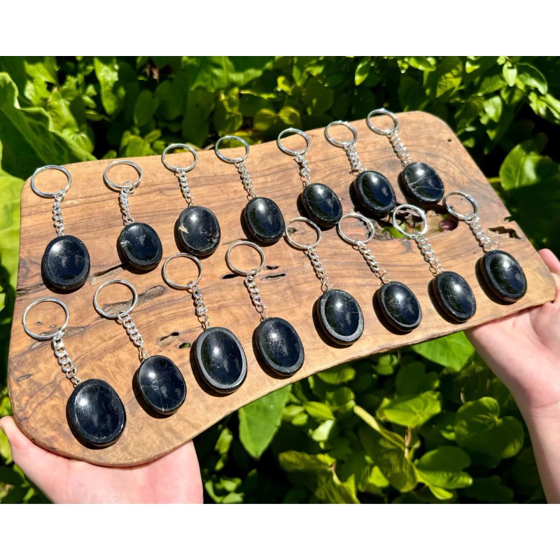 Black Tourmaline Worry Stone Keychains about 1.5" in size. These lovely