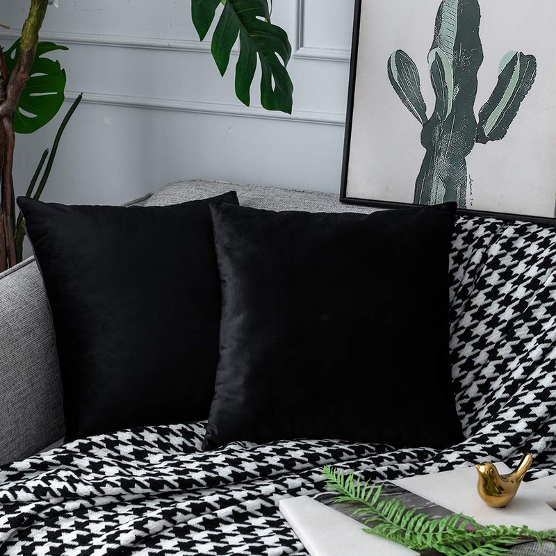 Black Velvet Throw Pillow Covers Square Soft Solid Decorative Pillowcase Set Cushion Case for Sofa Living Room Car 2 Pcs 16 x 16 inch