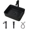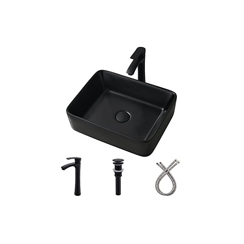 Black Vessel Sink with Faucet and Drain Combo -Bokaiya 19x15 Above Counter Bathroom Sink Rectangle Matte Black Porcelain Ceramic Bathroom Vessel Sink, Faucet Matching Pop Up Drain Combo