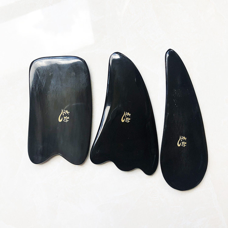 Black Water Buffalo Horn Gua Sha Tool for Face & Body - Triangular Shape, Free Size Standard 10ea