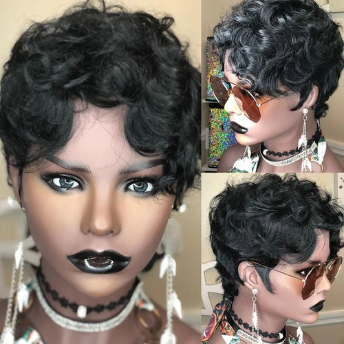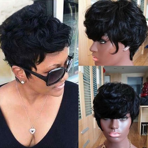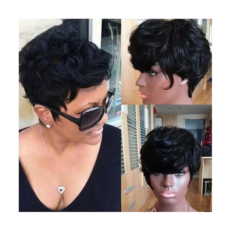 Black Short Pixie Cut Wave Remy Human Hair Wig For Women Brazilian Fashion Daily