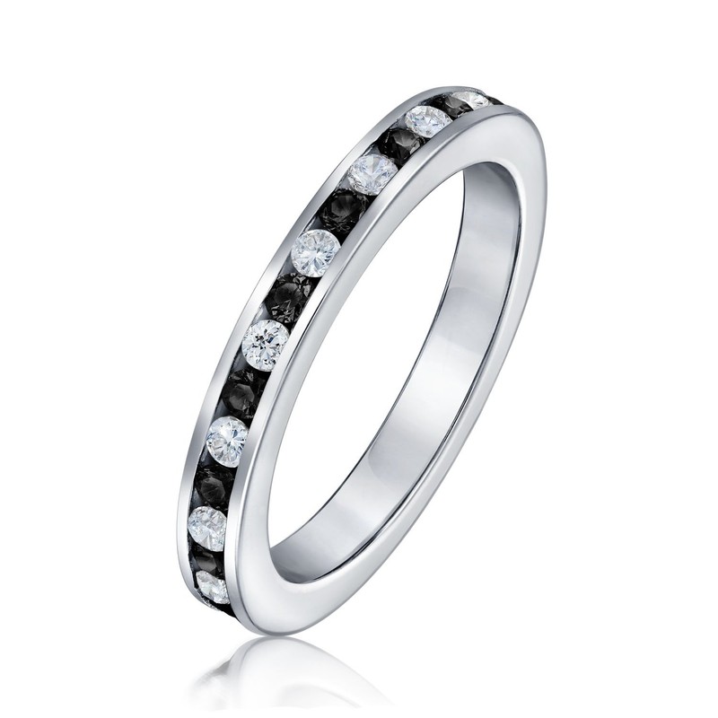 Black White Alternating Stackable CZ Channel Set Eternity Band Ring Simulated Onyx For Women For Teen Sterling Silver