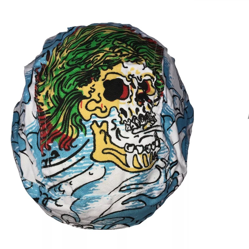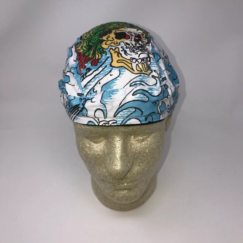 Black & White Blue White Tatto Sugar Skull Doo Rag Sweatband Headwrap Cap Biker Durag
