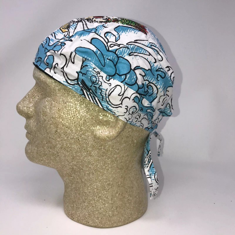 You will get 1Blue and White Tattoo Sugar Skull Premium Road Hog with Sweatband in Liner Doo or Du Rag head wrap Skull Cap (ZSG072). Made from 100% cotton and is one size fits most. Road Hog (a Zan Headgear Product) are Premium Doo Rags that are a bit larger and better quality material then many Doo Rags on the market. Vagabond Joes has 100s of styles to doo rags available at many different price points, colors and designs. All Road Hog's have ties in the back for a great fit for your head. These make a great alternative to a hat or cap. Great for Hunters, Bikers, Paintball, Sports of All Kinds, Chemo or Alopecia Hair Loss and much more. Choose from a wide assortment that suits your needs and save on shipping/handling for multiple items. Vagabond Joes is also carries hundreds of other head wear items in many different catagories...if it's for your head, we carry it. So make your head happy and take a look at all the items available at our Ebay Store.