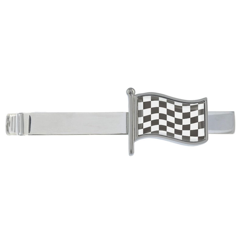 Black & White Chequered Flag Design Tie Clip Presented in a Gift Box