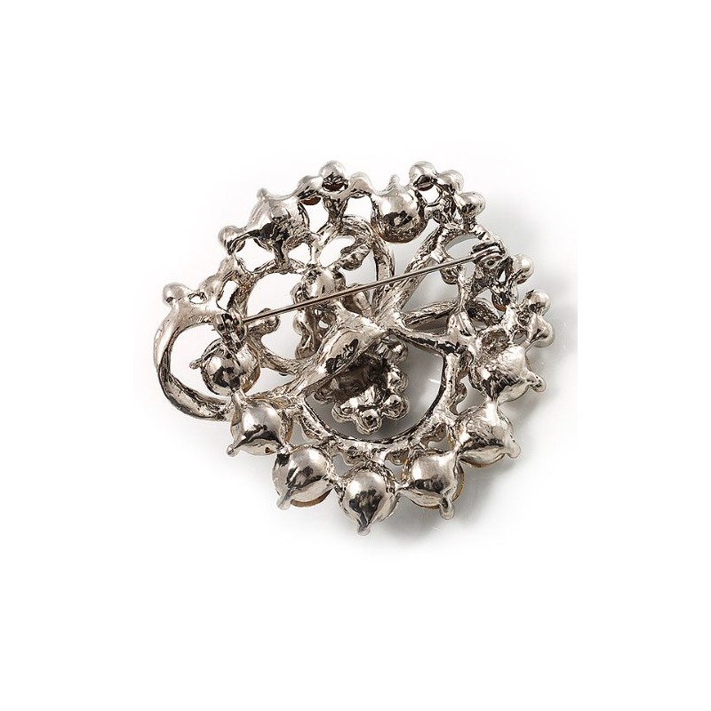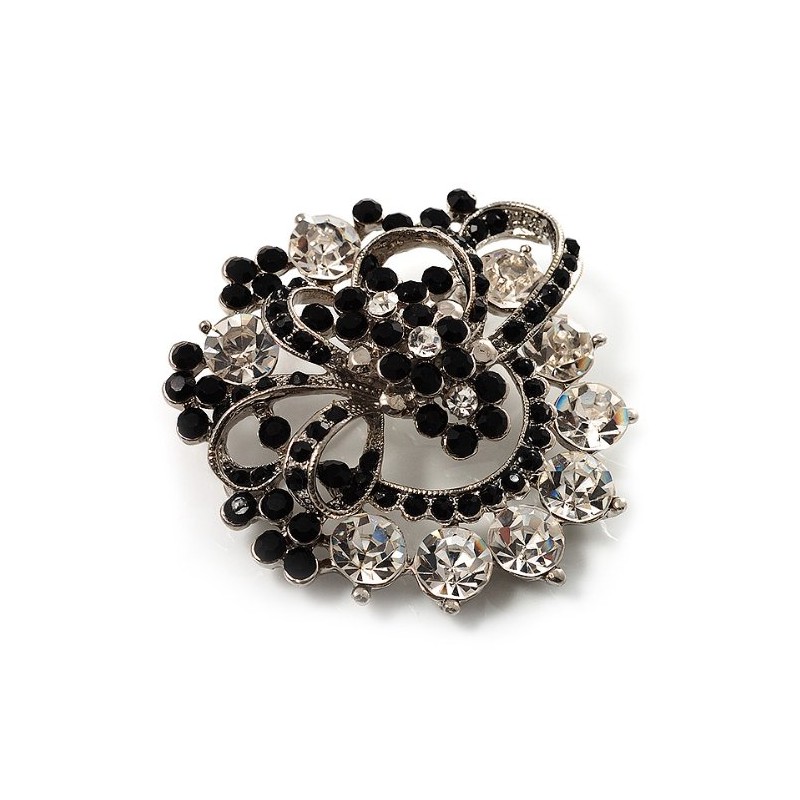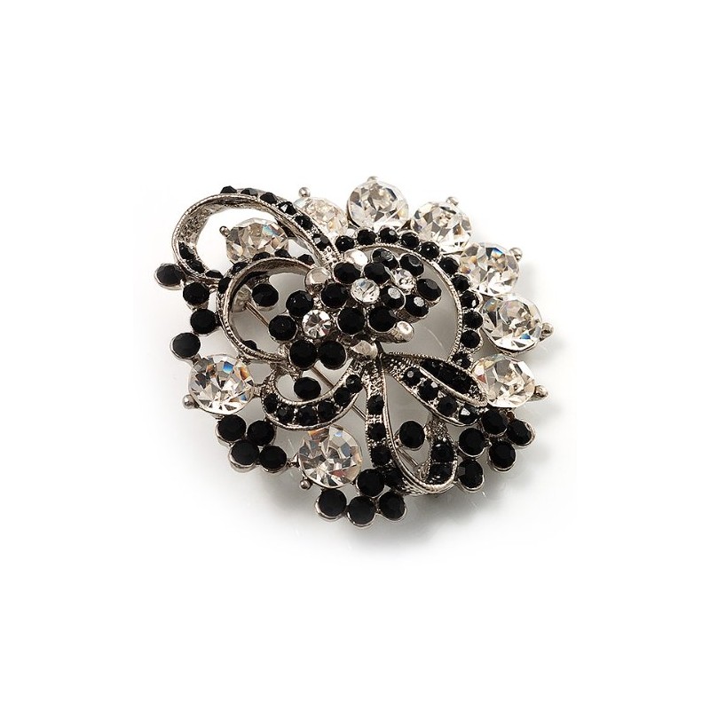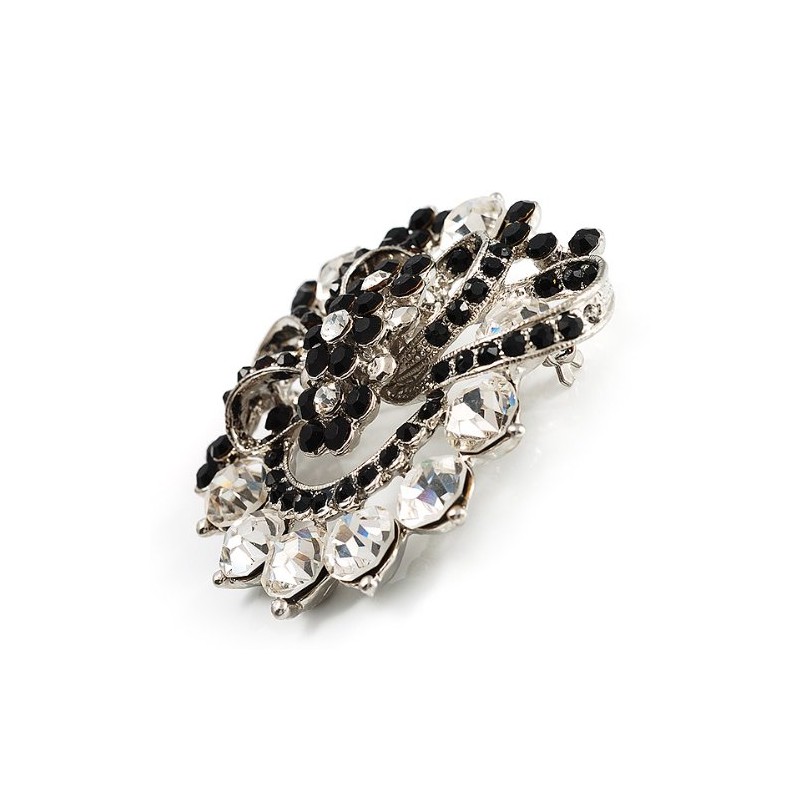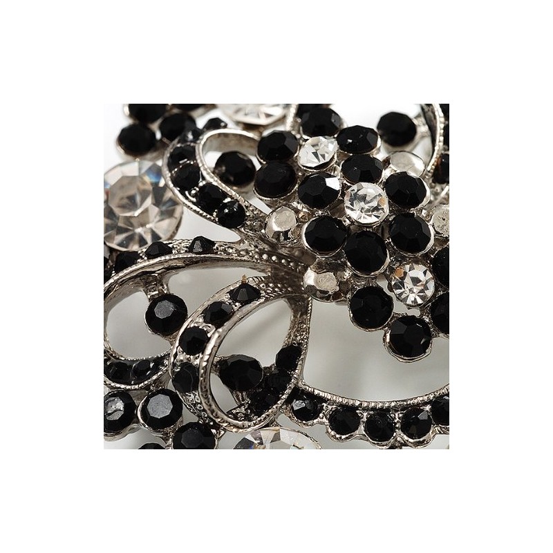 Black & White Diamante Corsage Brooch (Silver Tone)