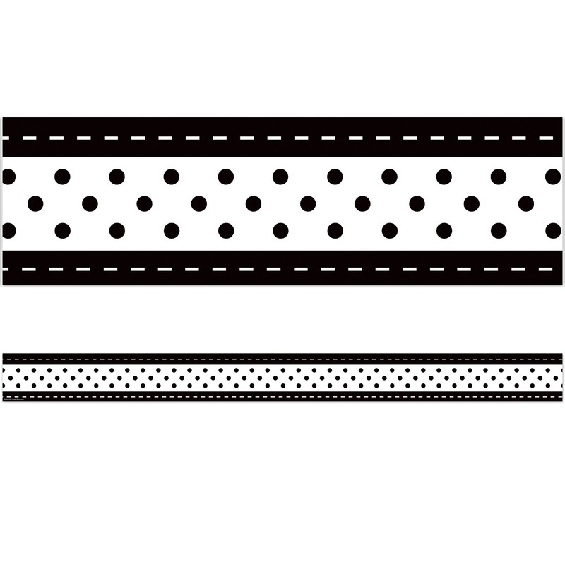 Black & White Stitch 'n' Dots Straight Border Trim