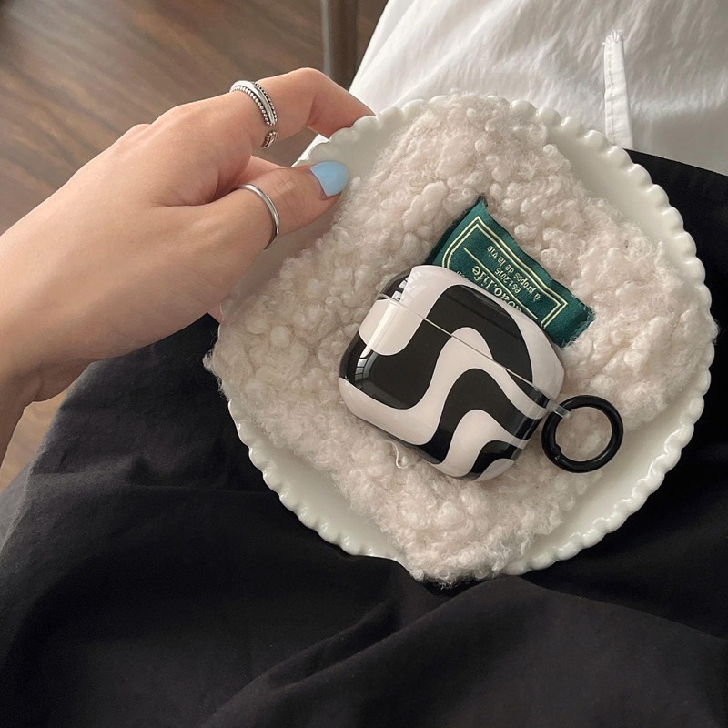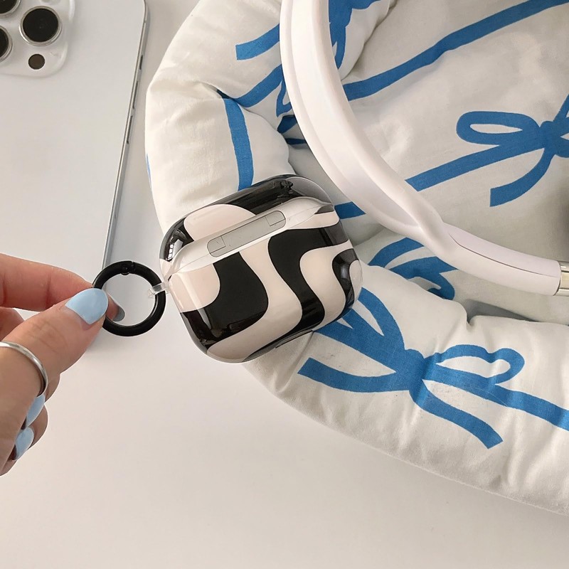 Black White Zebra Print Case for AirPods 3rd with Keychain - Cute Chic Wave S...