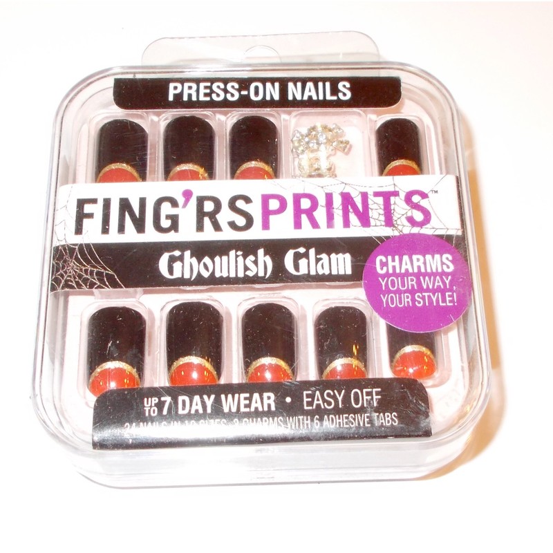 Black Widow Ghoulish Glam Press-on Nails Black Red Tips Charms Halloween Accessory NIP